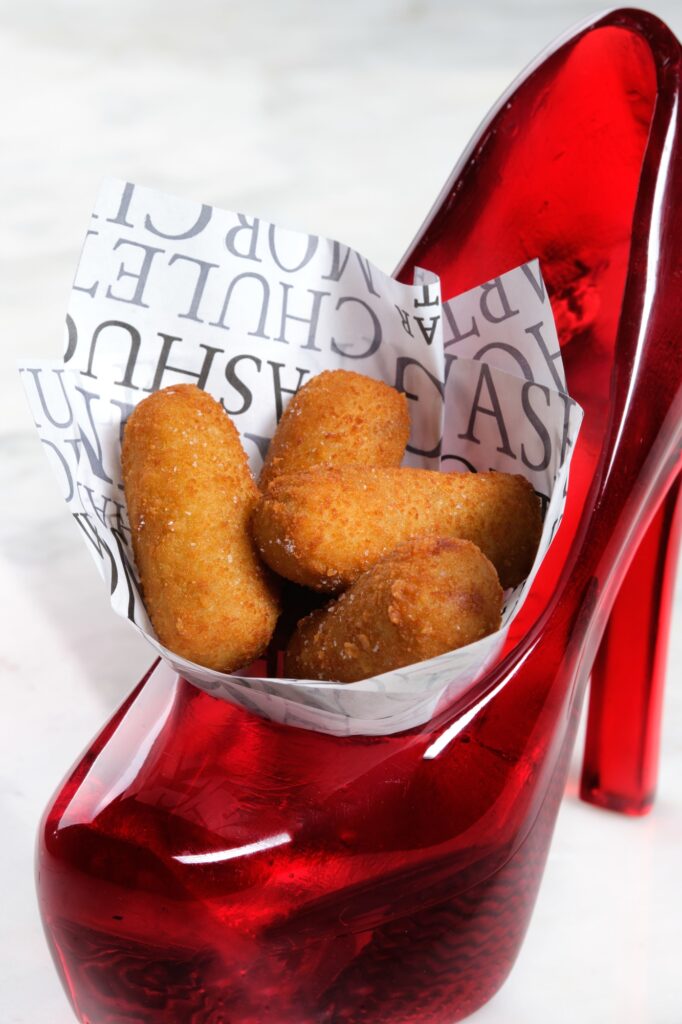 Other items on the menu that will be familiar to frequent Bazaar visitors include Ferran Adria Olives (liquid olives), Croquettes de Pollo, Endive Caesar Salad, Gazpacho, Buttered Potato Puree, Josper-Roasted Asparagus with Romesco Sauce, and assorted Desserts. Medina says that in addition to being some of the restaurant’s most popular dishes, they all illustrate one of its guiding principles.
