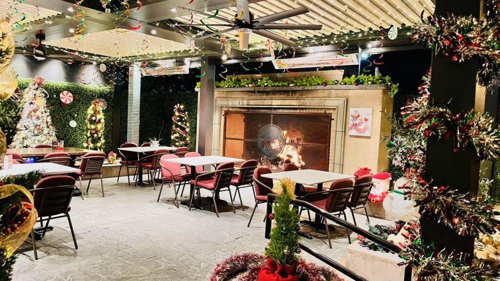 “We have a beautiful patio. It’s all redone; warm in the winter, cool in the summer,” Scalleat begins. “You [have] to see the Christmas decorations. We went all out for Christmas decorations. It looks great. So, any kind of parties [you’ll] have around the holidays, you should have them here on our patio.”