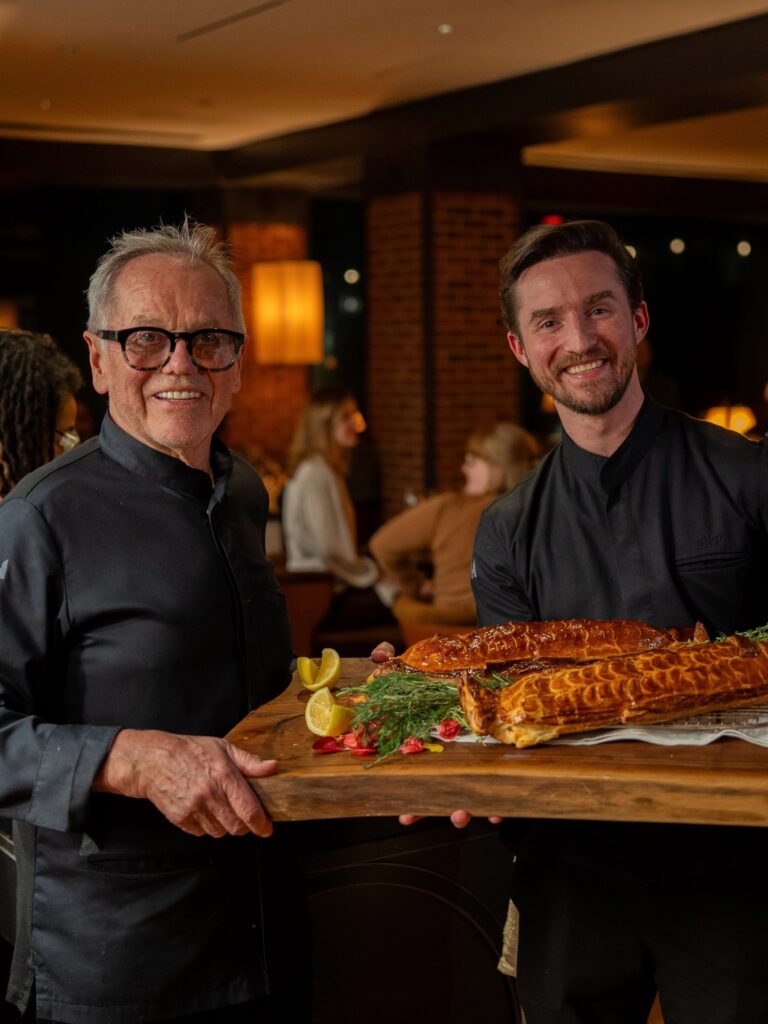 The dinner will feature five courses, with Chef Wolfgang presenting a dish that cemented his iconic status, followed by the same concept transformed and re-imagined through Byron’s eyes, with the cutting-edge techniques he honed in three-Michelin-star kitchens and a contemporary, global perspective. While the full menu will be a surprise to attending guests, highlights will include Wolfgang Puck’s Chinois Oyster and Kärtner Käsenudel with Caviar.