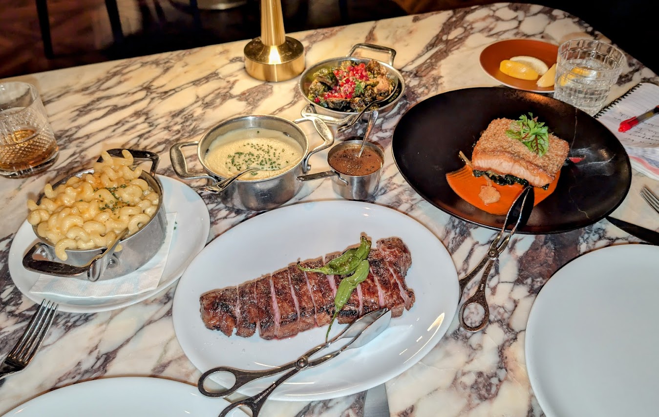 The chef shows his versatility and mastery of combining ingredients with standout dishes such as Wagyu Cheese Slider with caramelized onions, aged provolone mornay, and truffle on a buttered Parker Roll; Big Eye Tuna Tartare with tapioca cracker, avocado, and aji Amarillo aioli; Atlantic Salmon with Dijon gremolata, chickpea panisse, Swiss chard, and Romesco sauce; Mac N Cheese with cavatappi pasta emboldened with aged Irish cheddar; Brussels Sprouts with pomegranate, honey, and chili flake; and Pommes Purée (mashed potatoes) that are equal parts potato and butter.