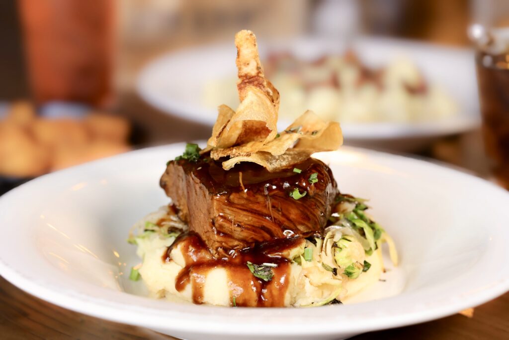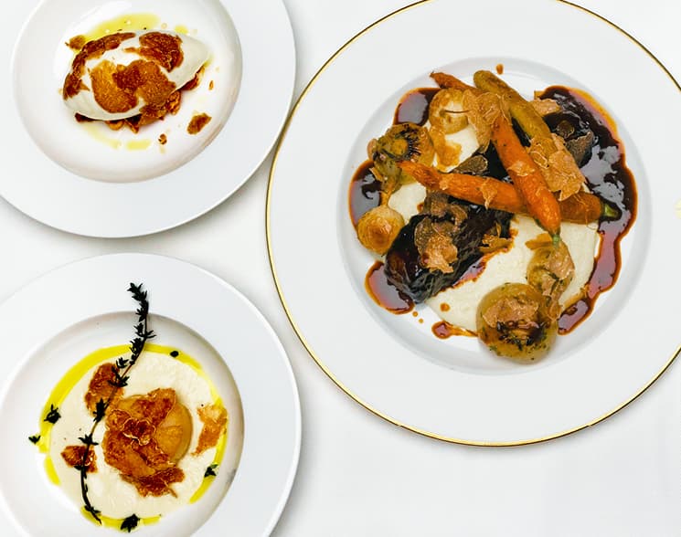 - Braised Wagyu Beef Short Rib with creamy polenta, roasted root vegetables, and shaved white truffle matched with Barolo Riserva, Elvio Cogno “Ravera, Vigna Elena,” Piedmont 2017