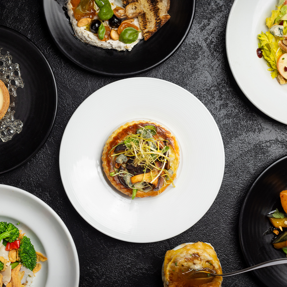- Lion’s Mane Mushroom Steak with potato mille-feuille and Bordelaise or Porcini and Leek Tortellini with parmesan herb butter