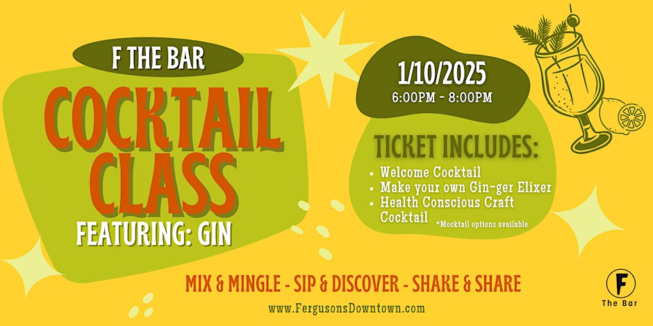 F the Bar at Ferguson’s Downtown will help kick off 2025 with its New Year, New Cheers: A Health-Conscious Gin Cocktail Class offering a fresh perspective and a healthier twist on cocktail making.