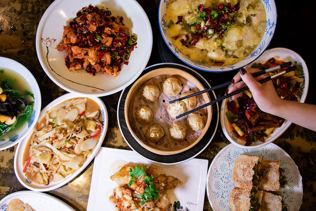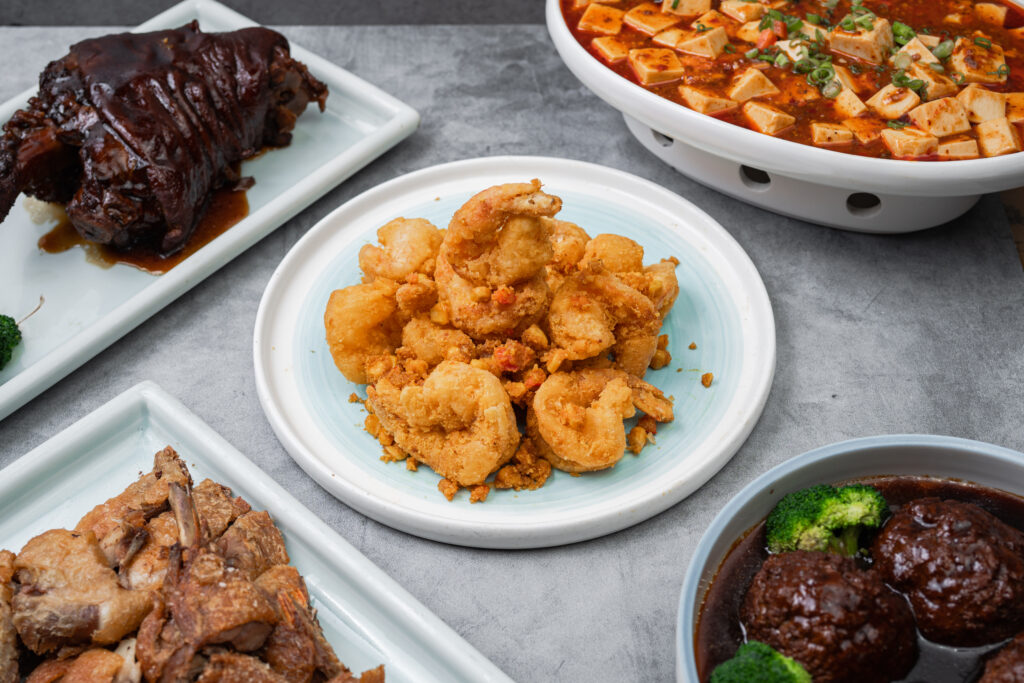 Must-haves on the traditional Chinese menu include Crispy Beef with beef strips, carrot strips and minced garlic; Sizzling Beef in Black Pepper Sauce with beef tenderloin, celery, carrot slices, onion, and crushed black pepper; Fresh Shrimp Spring Roll; Twice Cooked Pork with pork belly, Napa cabbage, green and red bell pepper, and chili bean paste; Soup Dumpling with options of shrimp, pork, and sea urchin; and Orange Chicken with white meat chicken, orange peel, and broccoli.