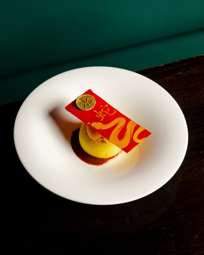 - Lucky Red Envelope is a dessert featuring mango curry mousse, cashew peanut praline, and mango passion fruit sorbet.