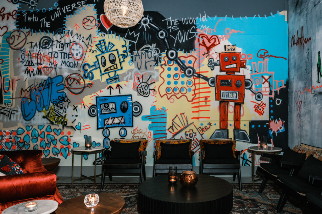 Co-owners James Trees and Keith Bracewell have unveiled their latest venture, Petite Boheme, a precursor to their Bar Boheme opening this spring. Housed in a reclaimed transmission shop at 1407 S. Main Street, a few blocks south of Trees’ iconic Esther’s Kitchen Italian restaurant, the small non-gaming bar aims to recall Paris, France, with a twelve-seat polished marble bar, original street art by local artist Rocky Asbury, eclectic wicker and velveteen seating, vintage Persian rugs, and outdoor seating accented by strings of café lights and heaters.