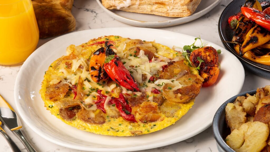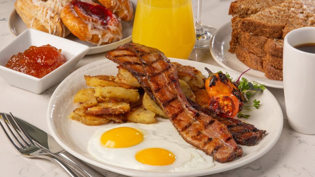 Chef Luke and Chef Rafael work together to design a menu that’s fun and global with something for everyone at prices well below what you’d find on the Strip, or anywhere, for that matter. The highest priced item is the 8 oz NY Strip with chipotle BBQ sauce for $28. The varied menu also includes Crispy Calamari with honey-gochujang dipping sauce ($14); Spicy Tuna Poke with wonton chips, avocado, unagi sauce, and tobiko caviar ($22); Asian Chopped Chicken Salad with Napa cabbage, toasted cashews, and sesame-ginger dressing ($18); Truffled Mushroom Pizza made with Chef Luke’s NY-style dough and Italian non-processed flour, sauteed mushrooms, and truffle sottocenere cheese ($24); and Pan Seared Salmon with sauce vierge served with grilled asparagus ($26). Breakfast is available daily from 11 a.m. to 2 p.m. with two choices: Laguna Breakfast, featuring two eggs, home fries, a selection of meat, and toast ($22), and Breakfast Burrito, filled with scrambled eggs, smoked chicken sausage, potatoes, and cheddar, served with home fries ($17). Sweet indulgences include the Fruity Pebble Cheesecake, which incorporates the popular cereal into the batter.