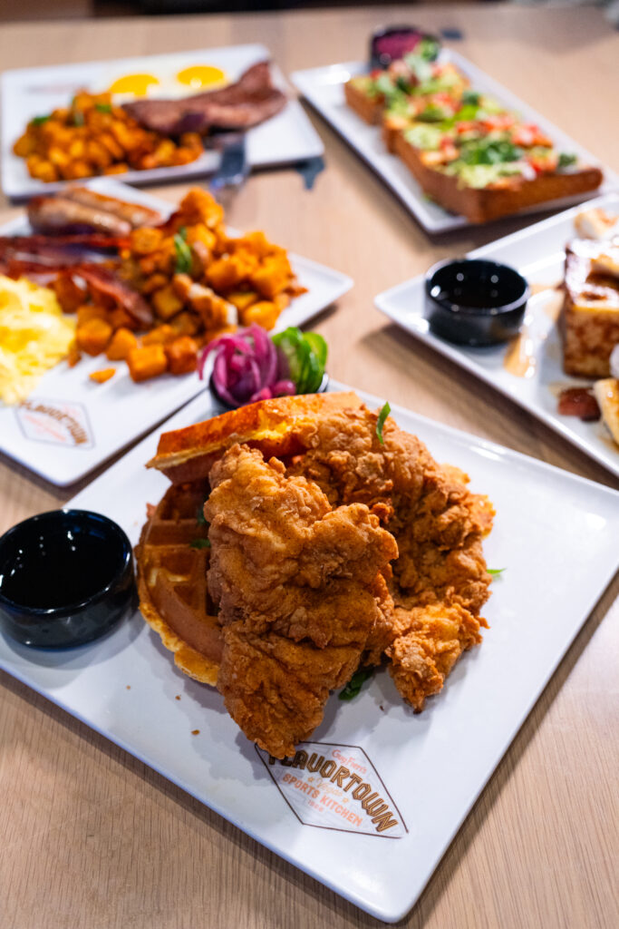 Priced at $19.99 per person, the bottomless brunch includes favorites such as Fieri Family French Toast with thick-cut brioche bread, banana custard, crispy smoked bacon, bruléed bananas and maple syrup; Off Da Hook Biscuits N’ Gravy with house-made buttermilk biscuits smothered in jalapeño-sausage gravy, jalapeño, and bacon; and Flavortown Chicken N’ Waffles with fried chicken and a cornbread cheddar-jalapeño waffle served with Sriracha maple syrup and maple butter. Add-ons include Steak + Eggs for $10 and a bottomless drink package including a choice of mimosas, bloody marys, or margaritas for $29.99.
