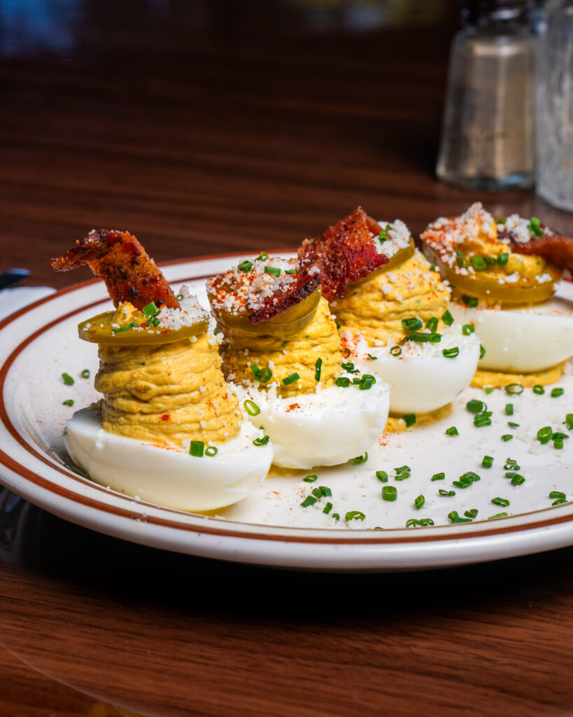 Highlights of the new dinner menu include Smoky Deviled Eggs filled with smoked jalapeno and cotija cheese topped with candied bacon, jalapeno escabeche, and paprika; Pork Belly “Wings”—thick-cut pork belly tossed in fish sauce and coated in fried garlic; 8 oz Caveman Burger stuffed with smoked jalapeno, candied bacon, smoky gouda, and roasted onion aioli; Blackened Rainbow Trout Cajun-seasoned and pan-seared crowned with house-made High Mesa butter; 8 oz Hanger Steak served with a smoky peppercorn cream sauce; 14 oz Pork Porterhouse with whole-grain mustard pan jus and grilled pepperoncini; and eight sides including Spatzle Mac & Cheese, Creamed Kale, and Twice-Baked Sweet Potato.