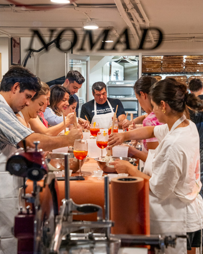 The cost is $87.80 per person (including fees). Included are a spritz, choice of a white or red wine, a curated board of Italian meats and cheeses, tastes of select All’Antico Vinaio’s signature sandwiches, and your freshly baked schiacciata loaf to take home.