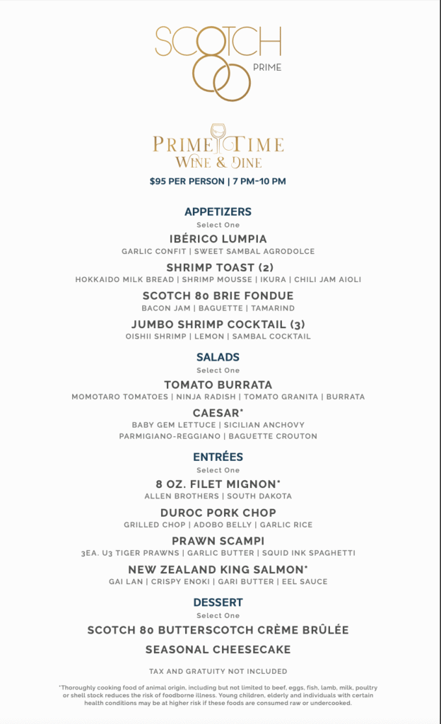 Scotch 80 Prime at the Palms Casino Resort is launching its Prime Time Wine & Dine promotion.