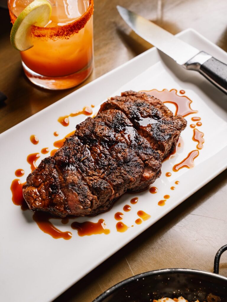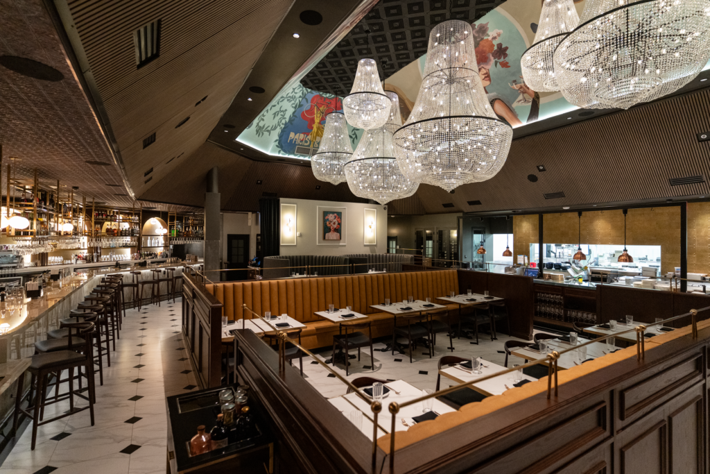 EDO Hospitality Corporate Chef Tayden Ellamar leads Executive Chef Roberto Higuera in presenting a menu representing French-Spanish cuisine. Highlights include Caviar & Churros with Kaluga caviar, buckwheat churro, crème fraiche, capers, egg, and chives; Tableside Beef Tartare; Escargot; 30-Day Dry Aged Striploin Carpaccio with puri-bread, Payoyo cheese espuma, and black truffle vinaigrette; Foie Gras Tart with seared foie, stewed apple, calvados caramel, and pecan crumble; pasta and rice dishes like Ravioles du Dauphiné, Parisian Gnocchi, and Risotto; seafood including Roasted Cod, Miso Glazed Lobster Thermidor, and Whole Dover Sole; and desserts like Chocolate Tart, Vanilla Crème Brûlée, Banana Paris Brest, and Coconut Mojitos.