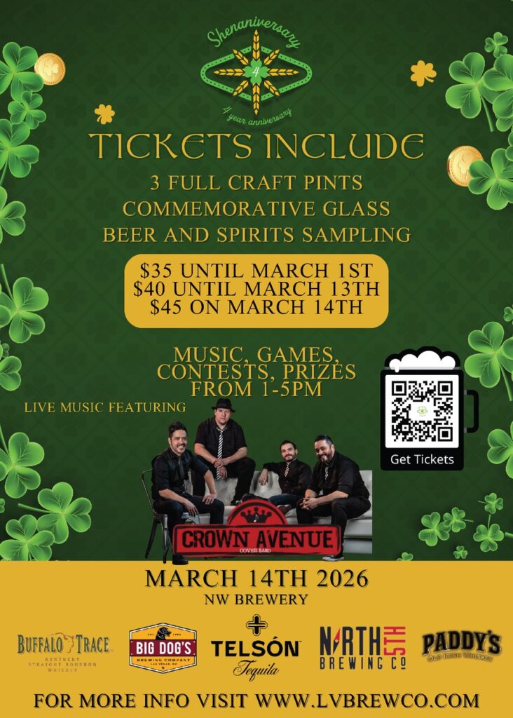 Las Vegas Brewing Company will celebrate its 4th anniversary with a St. Patrick’s Day-themed party named Shenaniversary.