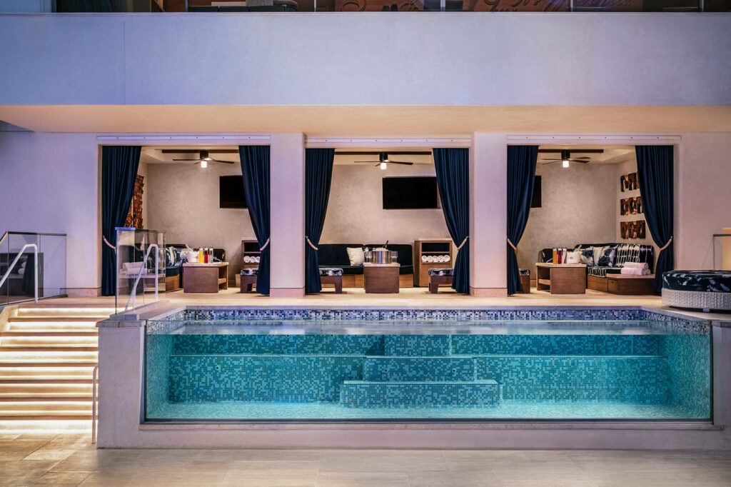 The pool complex includes two resort pools plus private plunge pools, with no cover charge and no reservation needed. Las Vegas residents can reserve a cabana at no charge on a first-come, first-served basis Monday through Thursday. (A refundable $50 deposit is required at the time of booking and will only be charged in the event of a no-show.)