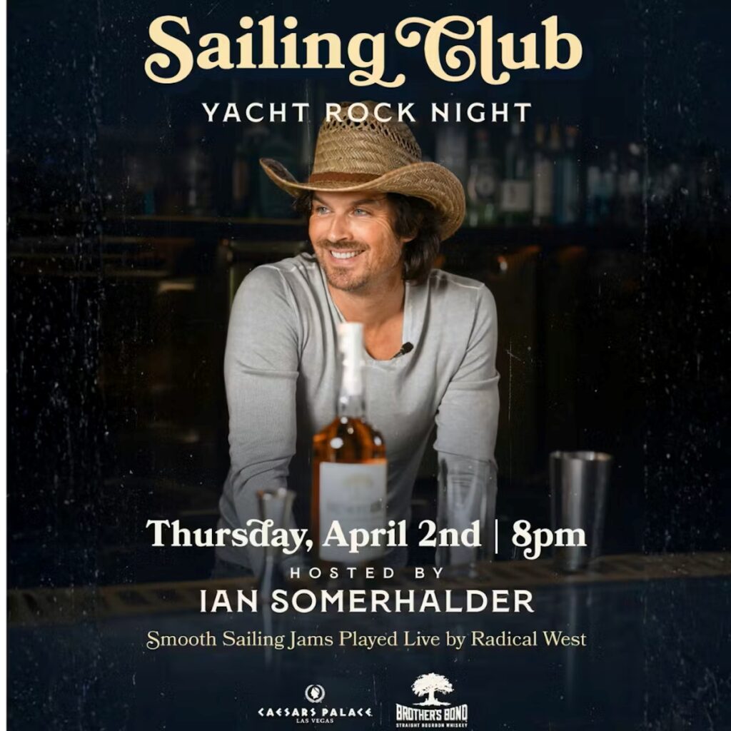 Ian Somerhalder, the critically acclaimed actor (known for his role as Boone Carlyle in Lost and Damon Salvatore in The Vampire Diaries), entrepreneur, and Brother’s Bond Bourbon co-founder, will become the newest captain aboard for an evening of calm seas and bourbon as he hosts Yacht Rock Night at Caspian’s Cocktails & Caviar at Caesars Palace.