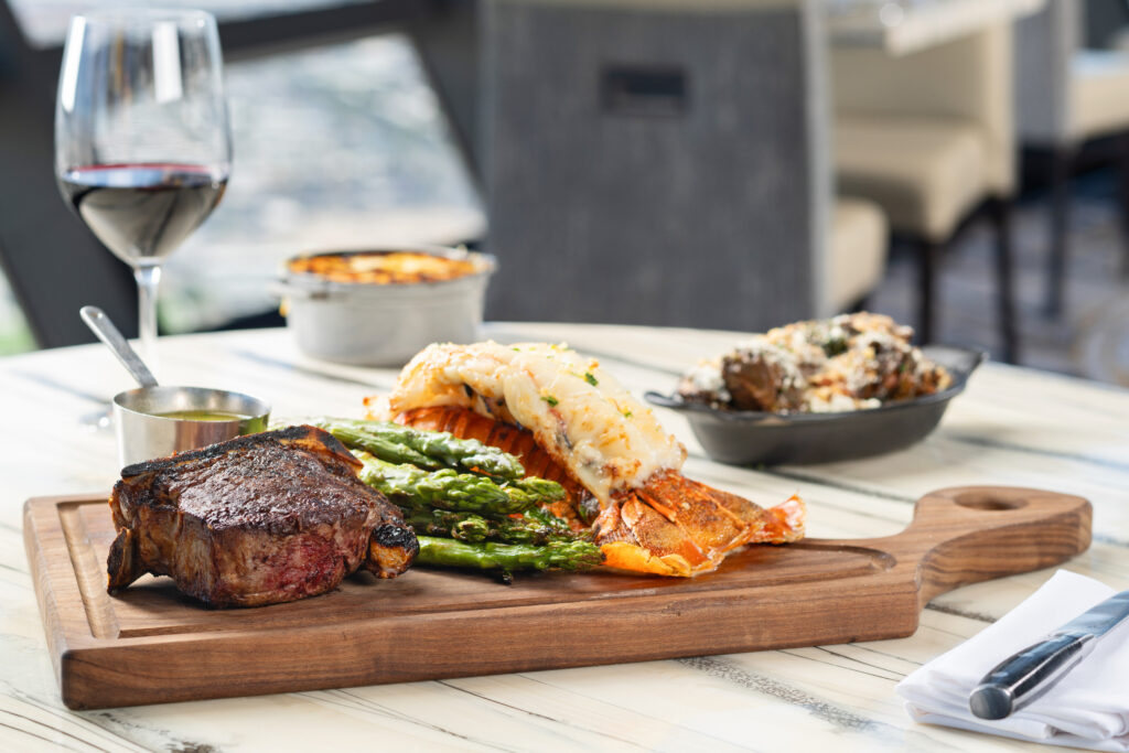 New entrees are Crab & Scallop Stuffed Sole with corn-habanero cream, acini di pepe pasta, and lemon beurre blanc; Linguini & Meatballs with lobster meatballs, roasted tomato and lobster sauce, and fresh linguini; plant-based Wild Mushroom Bolognese with rigatoni pasta, cashew cream, and fried basil; and Surf & Turf—16-ounce bone-in filet, 16-ounce Australian lobster tail, lemon-garlic drawn butter, and roasted asparagus.