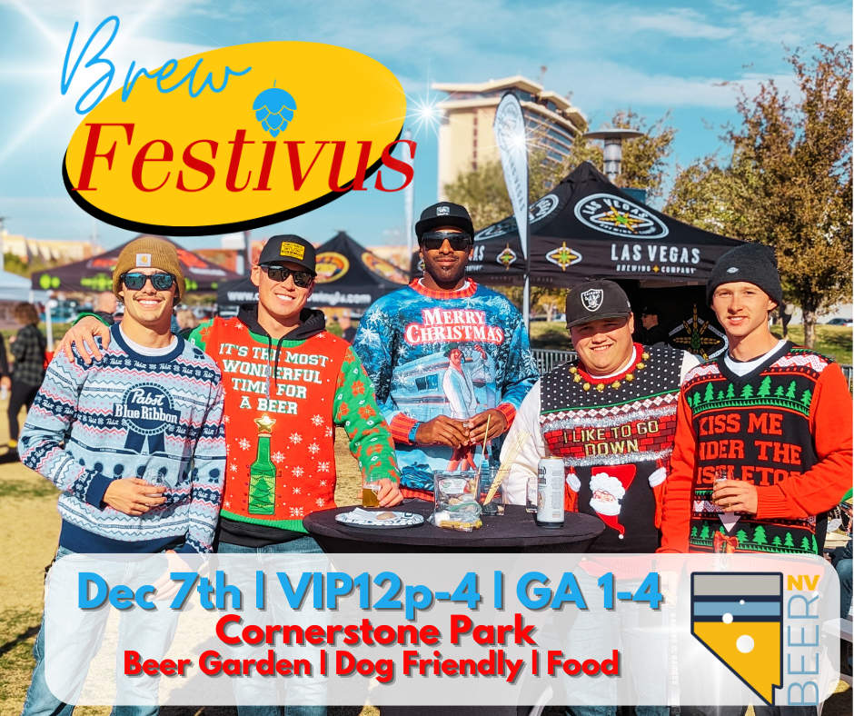 The Nevada Craft Brewers Association (NCBA) will provide an opportunity to taste more than 30 beers from more than 20 Nevada breweries at its annual Brew Festivus Beer Fest. Held from noon to 4 p.m. at Cornerstone Park in Henderson, the unlimited sampling will include rare collaborations, specialties, one-offs, holiday-inspired beers and hard cider. Bring your four-legged beer buddy in festive gear to enjoy the fun with a photo opportunity provided by Michael’s Angel Paws.