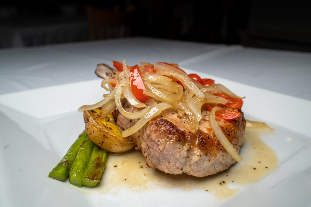 Main courses (which include roasted potatoes and broccoli or pasta) include a mix of proteins, including NY Steak, Pork Chop, Branzino, Chilean Seabass, and Veal Parmigiana. Chicken presentations shine with Chicken Marsala with marsala wine and mushrooms and Chicken Piccata with white wine and capers. Other than the steak, veal, and fish, most are priced between $21 and $26, and portion sizes are generous.