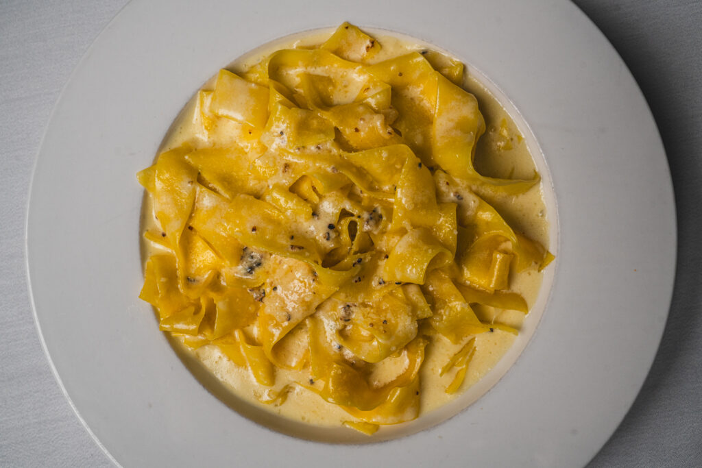 The bulk of the menu consists of pasta, such as Gnocchi with cream sauce, truffles, and mushrooms; tortellini with prosciutto, peas, cremini, and pink cream sauce; and Pappardelle Alfredo with fresh cream, butter, and parmigiana.