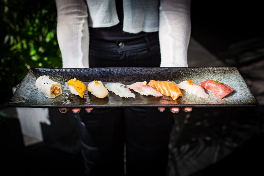 The menu includes signature sushi rolls, seafood, robata skewers, and Japanese-inspired dishes. Guests must show proof of residency to receive the discount.